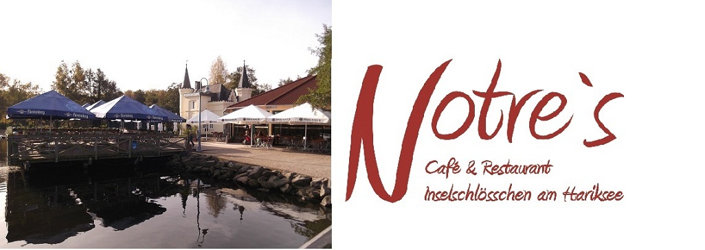 Im Notre´s Café & Restaurant Inselschlösschen am Hariksee greekcuisine kann man sich in stilvoller Atmosphäre direckt am Hariksee mit grosser See Terasse so richtig verwöhnen lassen. Neben griechischen Klassikern werden auch andere leichte mediterranen Besonderheiten serviert. Vor allem Fischfreunde kommen hier auf ihre Kosten.